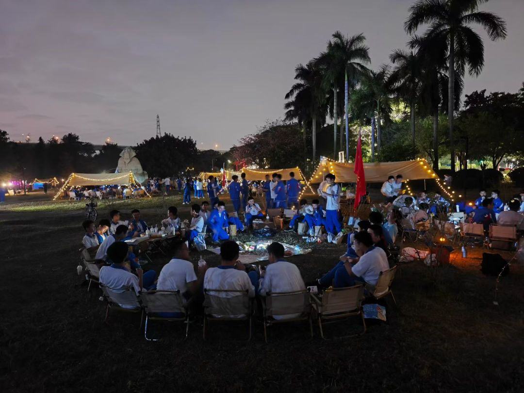 草坪铺就天然舞台,灯光缀成温柔星河,美食香气萦绕鼻尖,歌声与欢笑穿透夜幕……12月23日晚,广州大学附属中学高一年级的同学们告别了晚自习的教室灯火,奔赴梁明诚雕塑园的开阔草坪,一场兼具自然野趣与青春温度的露营派对就此启幕。在没有作业本的夜晚,他们以自然为友,在松弛的时光里触摸青春本真,收获书本之外的成长力量。
