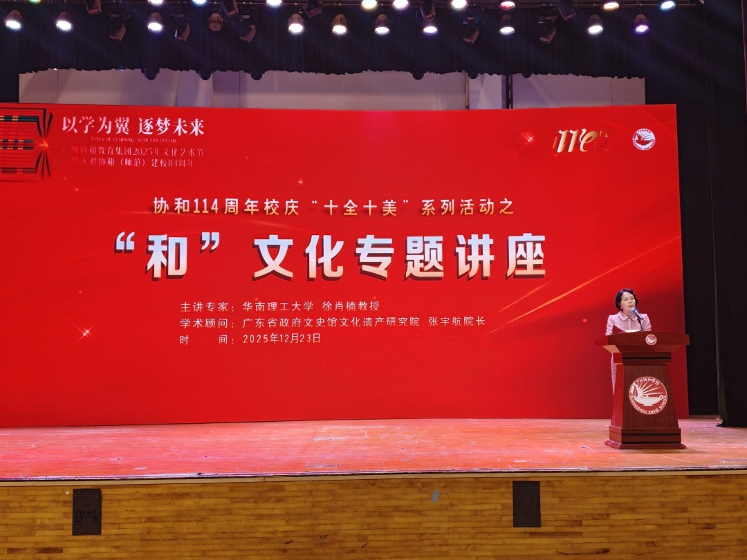 12月23日,广州协和学校举办“和”文化讲座,为该校114周年校庆系列活动之一。师生、校友、社区及家长代表共同参与,探讨“和”文化在时代发展及办学育人中的传承与践行,增强师生对校园文化的认同感与自豪感。