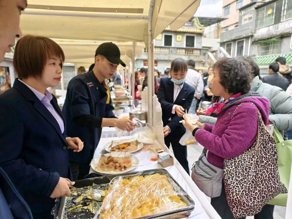 此外,现场还有慈善义卖、节目表演等活动,向群饭店、乾水居等商家带来特色美食供街坊品尝,参与美食评比,现场烟火气十足。