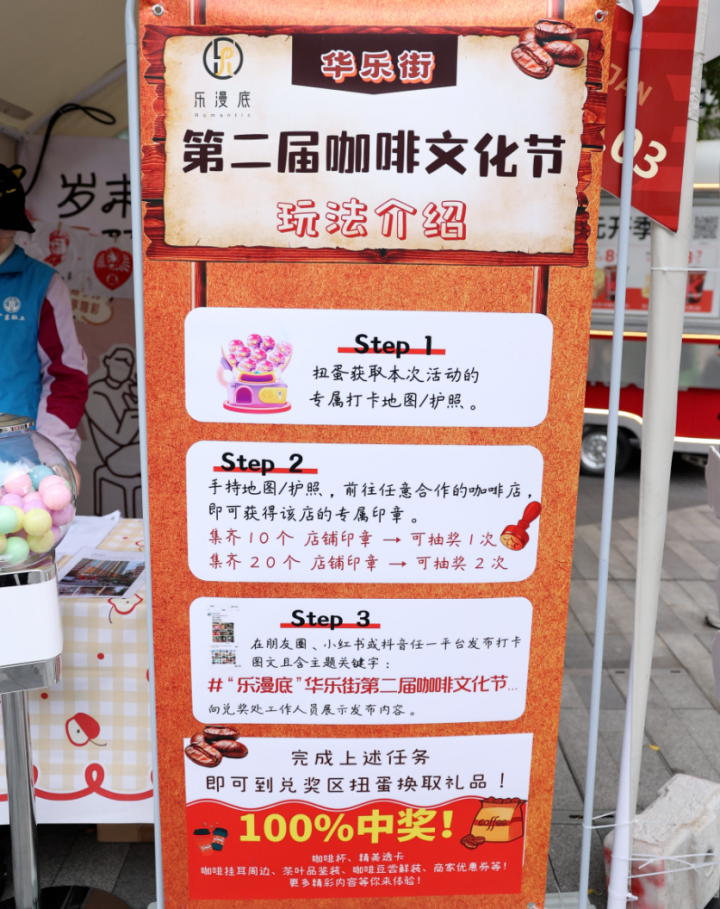 参与抽奖,有机会获得咖啡杯、挂耳咖啡、浓缩胶囊咖啡、茶叶品鉴装、咖啡豆、华乐街地标冰箱贴、咖啡商户优惠券等精美礼品,兑奖区开放时间:11:00-22:00(十天期间全天可兑)。