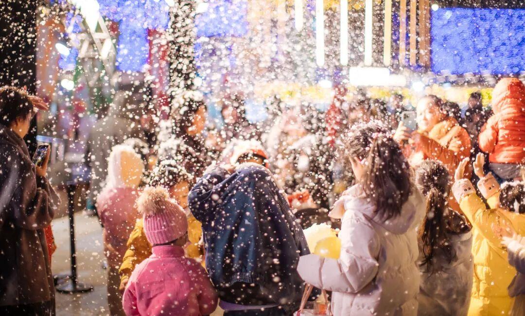 活动首次移至广州汉溪K11购物艺术中心三层的鲸鱼花园和五层的屋顶花园举办。这座位于长隆万博商圈中心、双地铁上盖的TOD综合体,其三层露台的鲸鱼花园本就颇具人气——由丹麦知名游乐设计团队打造的巨型鲸鱼装置和海洋主题设施,让这里成为孩子们的探险乐园。当浪漫的飘雪从天而降时,美好的一刻将在这里定格。