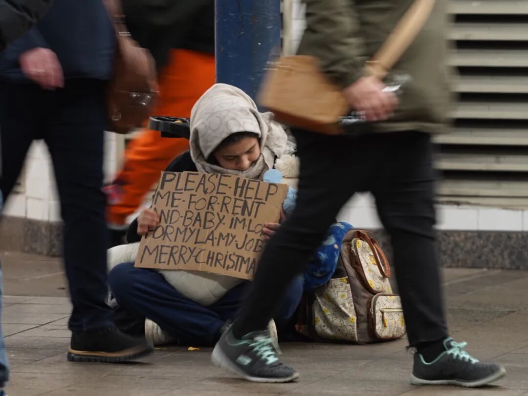 时值岁末,在美国纽约时常可见无家可归者和其他寻求救助的人们。图为12月17日,一名女子在纽约曼哈顿一处地铁站寻求救助。图源:新华社