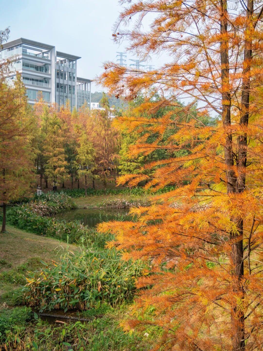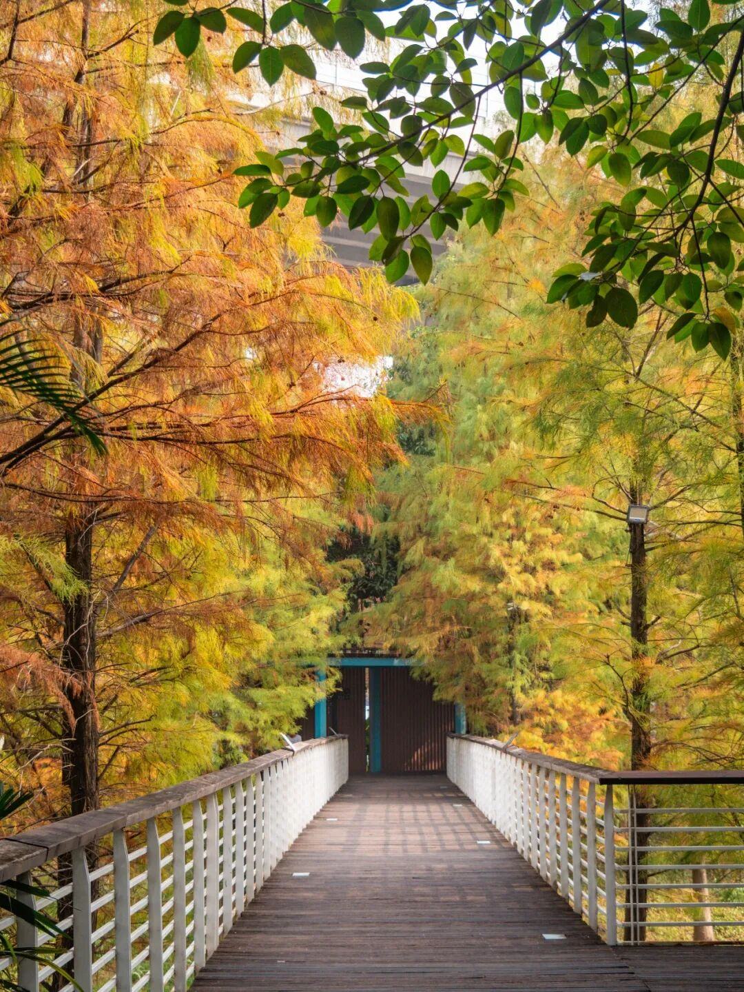 近期,天河大观湿地公园内,大面积的落羽杉正悄然换装,从夏天的绿油油渐变为焦糖、棕红与金黄相交织的暖色调。这片藏在广州繁华都市中的浪漫秘境,正在呈现一年中最唯美的风景。