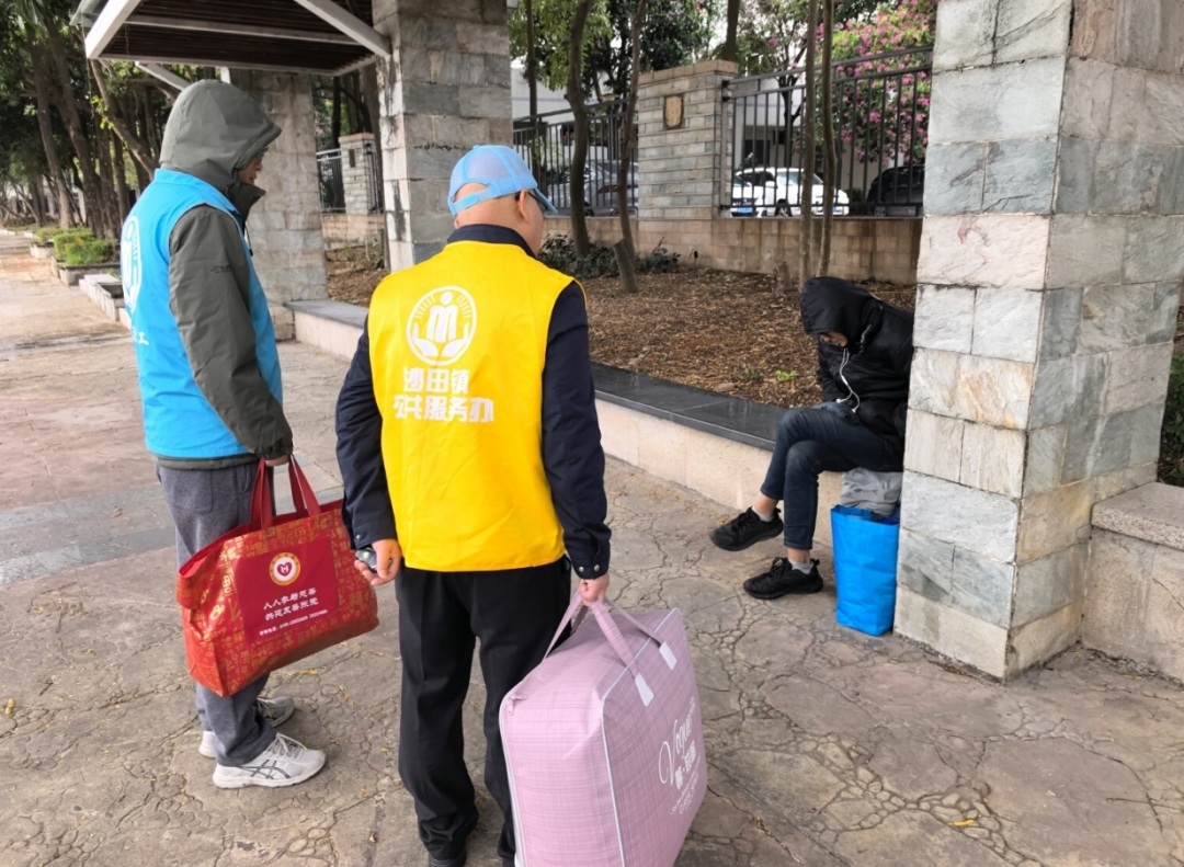 最终,肖某被工作人员的执着与发自内心的温情打动,放下抵触情绪,主动接受政府帮扶。沙田镇公共服务办当即行动,为肖某送上热菜、热水等暖心热食,帮他驱散寒意,随后又送上厚实被褥、保暖衣物等御寒物资,细致安置其住宿,全程贴心照料、周到服务,切实保障肖某能在温暖安全的环境中,平稳度过此次寒潮侵袭的寒夜,让“温暖沙田”的暖意直抵人心。