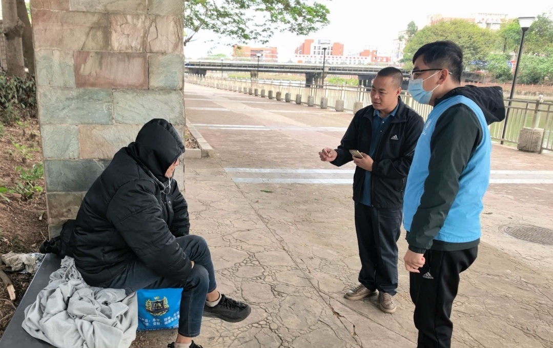 12月25日,气温骤降,寒潮突袭沙田镇,寒意逼人。当日,东莞市沙田镇公共服务办接到群众通过“东莞沙田”微信公众号私聊反馈,称有一名流浪人员在河边滞留多日,处境可怜,希望政府能伸出援手提供帮助。接到诉求后,沙田镇公共服务办第一时间响应,迅速组织工作人员和双百社工赶赴现场处置。