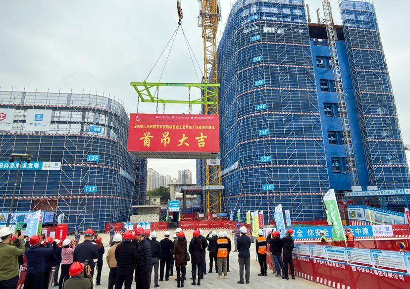 12月26日,深圳市人民医院宝安医院感染楼首个嵌入式模块已顺利完成吊装及平移就位,标志着工程进入全面快速建造阶段。