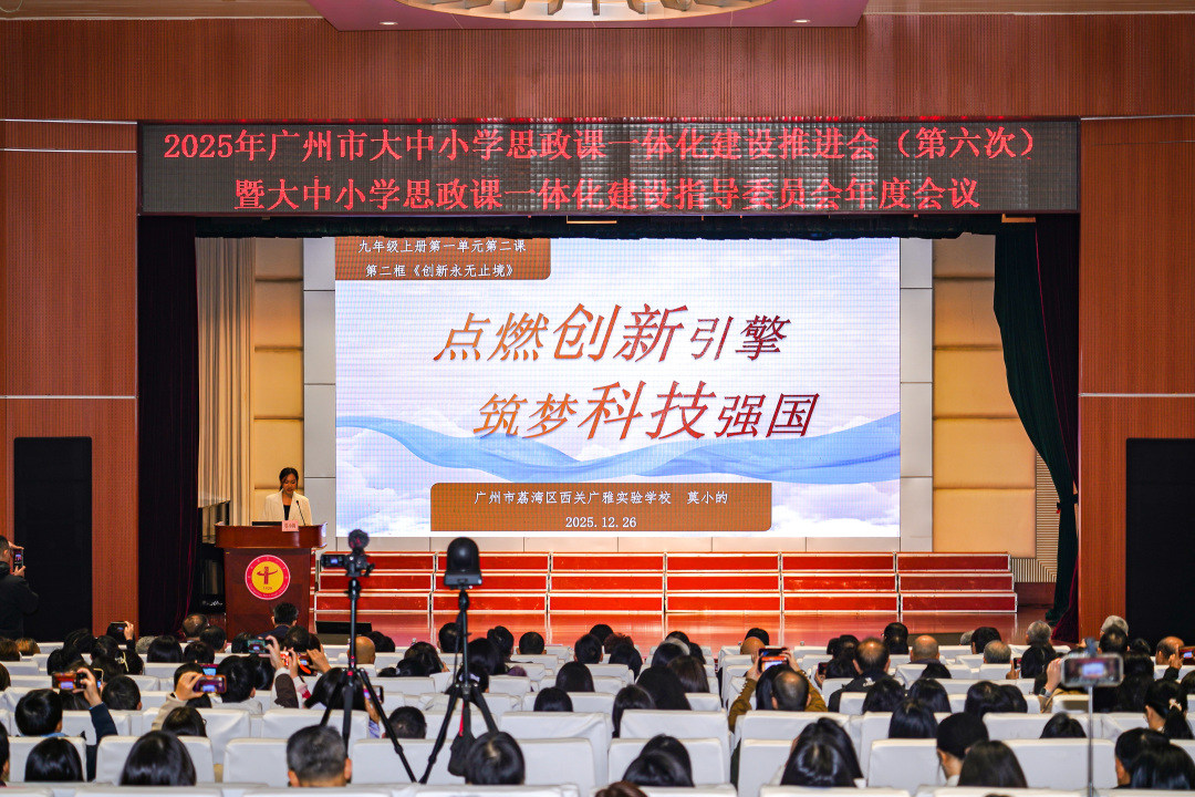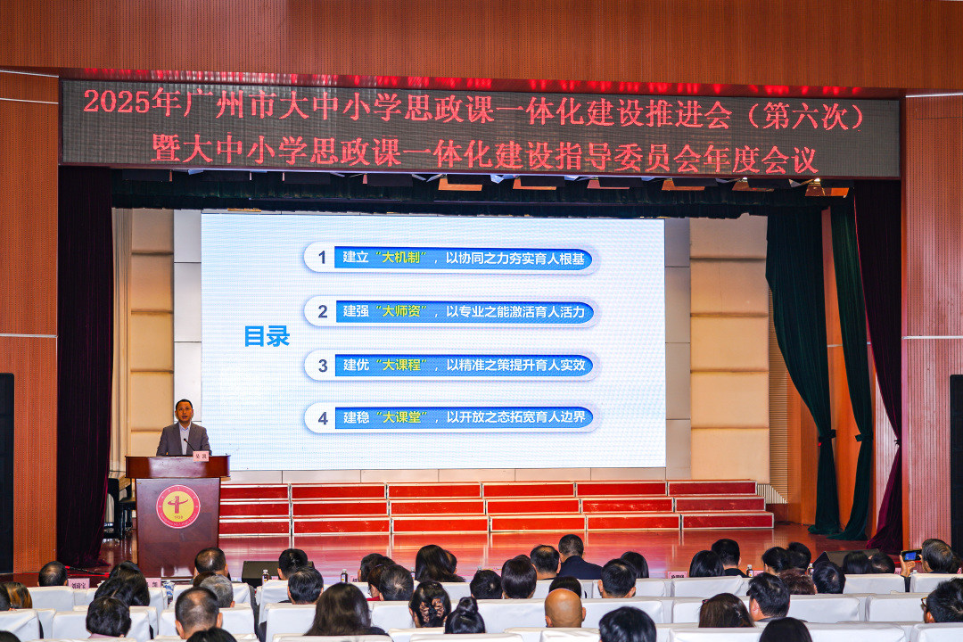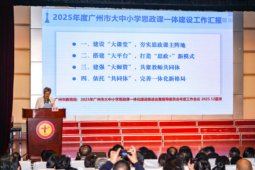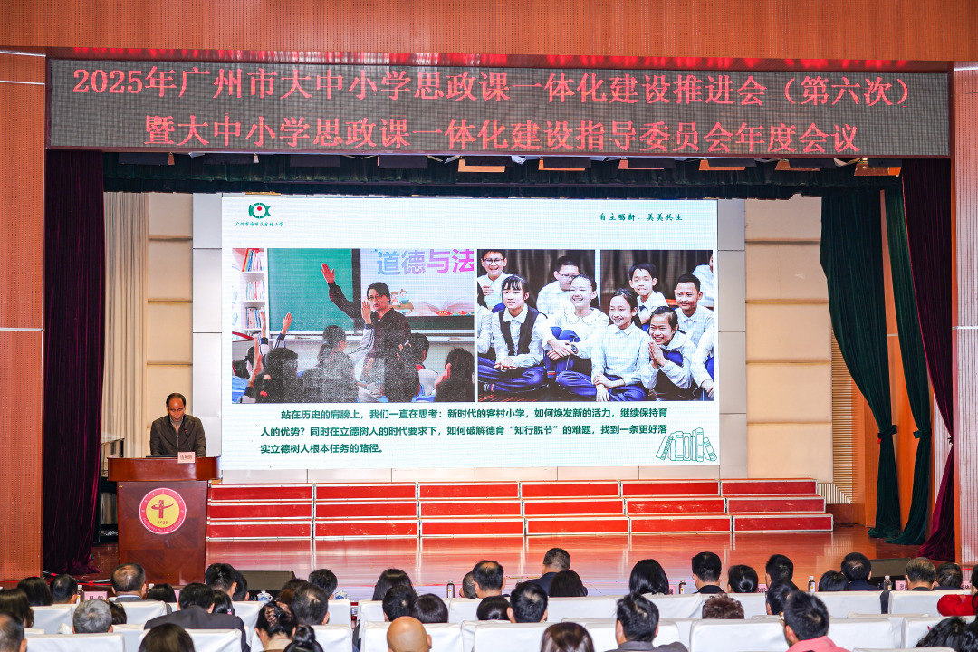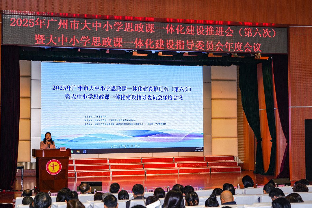 从小学三年级到大学三年级,不同年龄的孩子如何沉浸于同一个思政课题?从科技创新的体验到舞台艺术的诠释,不同的课程设计如何奏响立德树人的共鸣?12月26日,2025年广州市大中小学思政课一体化建设推进会暨指导委员会年度工作会议在广州市第一中学举行。广州相关职能部门负责人、高校专家及一线思政课教师700余人齐聚,既对过去一年广州学校的思政课建设进行回顾总结,也对如何推进“大思政”进行交流与探讨。