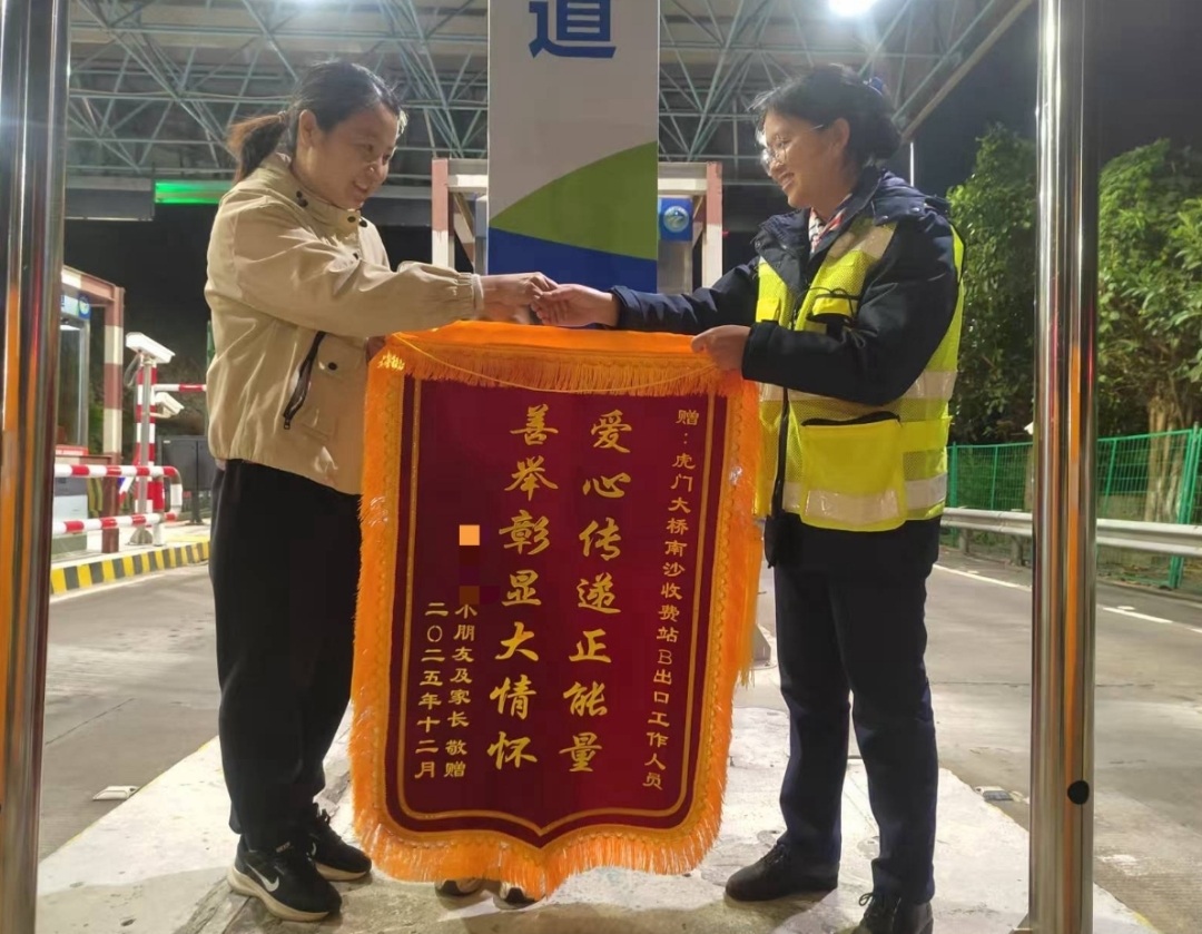 据了解,虎门大桥高速收费员在日常工作中多次处理类似老人、小孩误闯收费站,动物走失等突发情况,并通过与公安、监控中心联动建立起应急帮扶机制。这面锦旗的背后,是一个家庭化险为安的欣慰,也是一线收费员默默坚守的缩影。节日里,那些未曾停歇的守护,让“平安”二字显得越发温暖和珍贵。