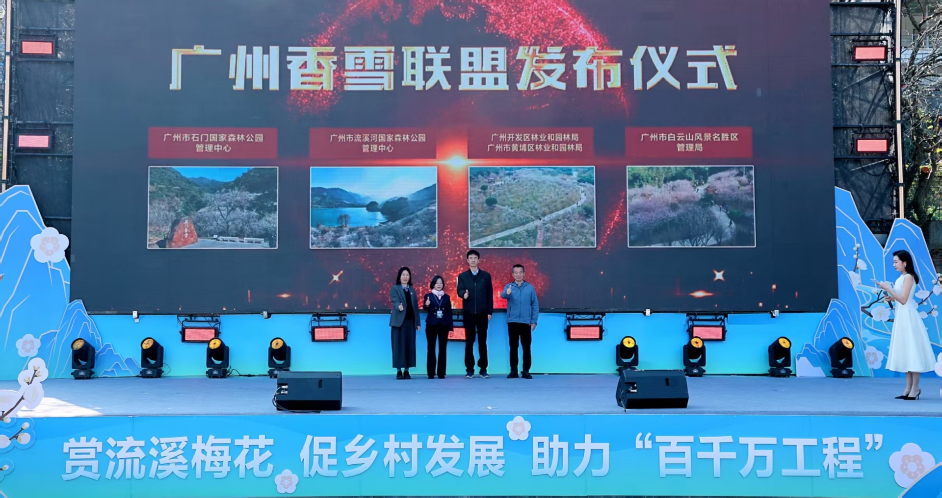 开幕式上,“广州香雪联盟”正式成立。萝岗香雪公园、白云山风景名胜区、石门国家森林公园与流溪河国家森林公园四园联动,系统整合优质梅景资源与文化内涵,策划推出精品旅游线路,合力打造“广州香雪”文旅IP,进一步丰富市民游客的冬季出游体验,激活广州冬季文旅消费新热点。