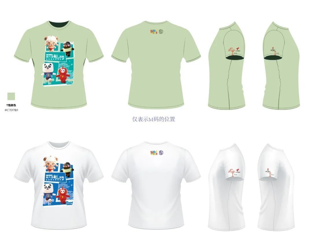 推出绿色、白色两款主题T恤(款式随机发放),正面印有斑纹羊、小黑鱼、样样、雷雷形象,服装背景分别以绿色、白色呈现,色彩取自流溪河的绿色与斑纹羊的白色。T恤后背与袖口均饰有“广州日报”等标识,细节满满。版型舒适透气,既适合跑步时自在挥汗,也能作为日常潮流穿搭,让斑纹羊和小黑鱼的陪伴从赛道延伸到生活。