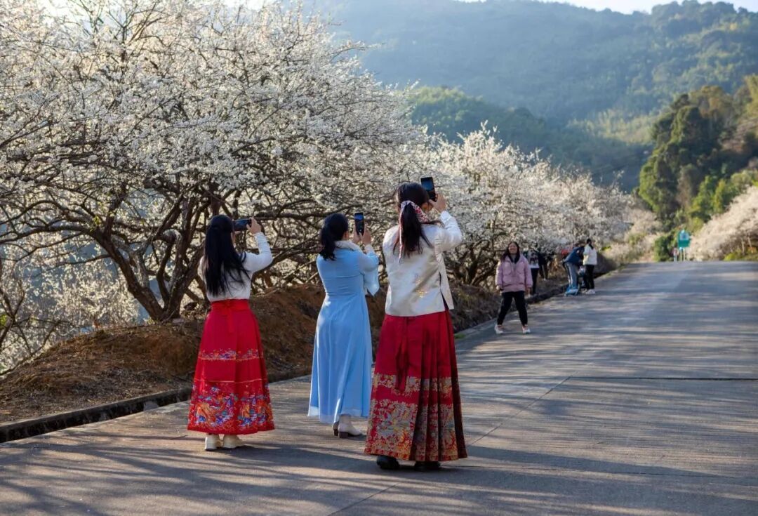同时,“梅林漫步”与“森林音乐节” 让游客在动静之间自由切换:既可于梅影疏斜处静听现场音乐,享受“森林+音乐+人”的沉浸式疗愈;也可携家带口参与“主题研学,快乐成长”,在专业导师带领下识梅知韵、制作手作。而创新推出的“‘梅’婆说媒”相亲联谊与“流溪烟渚”主题摄影大赛,则分别满足了游客的情感社交需求与艺术创作热情,一幅“生态赋能、产业联动”的活力画卷在梅香中徐徐展开。