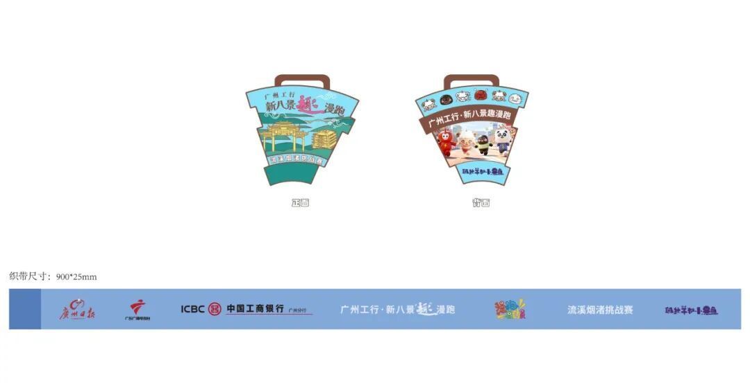 完赛即可解锁专属奖牌。奖牌设计融合赛事主题与流溪生态文化。奖牌正面呈现本次活动主题及从化流溪河流域具有代表性的地标建筑,背面则是《斑纹羊和小黑鱼》四个动漫角色的可爱跑姿,将自然之美与萌宝之趣巧妙结合,兼具辨识度与收藏价值。这块奖牌不仅是漫跑的荣耀见证,更是一份融合流溪生态文化与《斑纹羊和小黑鱼》童趣的独特礼物。