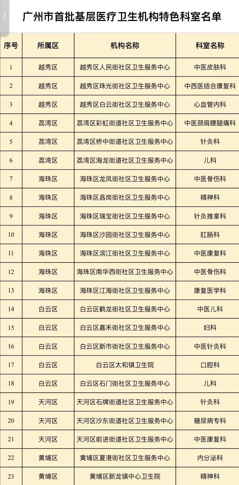 特色科室评审团队负责人、广东药科大学中医学院副院长赵昌林介绍,本批40个特色科室主要聚焦“一老一小一慢”等重点人群的健康需求,推动基层专科建设向老年人常见的慢性病如高血压、糖尿病、心脏病、骨关节病,儿科、康复医学科、精神科等方向倾斜,让群众能在“家门口”解决常见病、多发病问题,提升服务可及性,满足群众多层次、多样化的健康服务需求。评选出的广州市基层医疗卫生机构特色科室具有特色鲜明、治疗效果好、服务能力强,的特点,治疗方法简捷、方便、效果好、价格低。