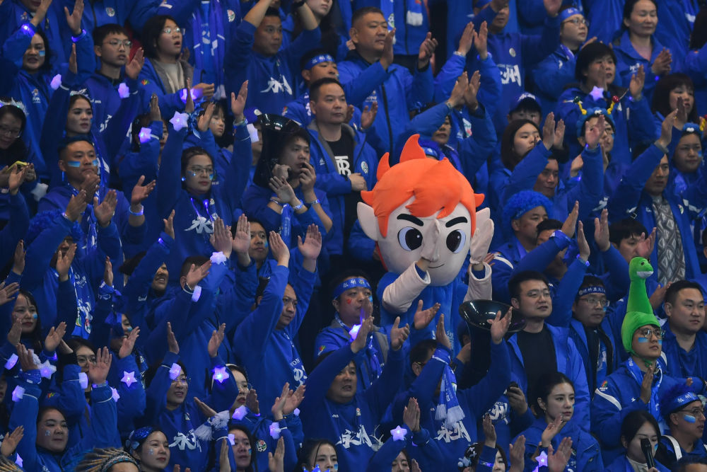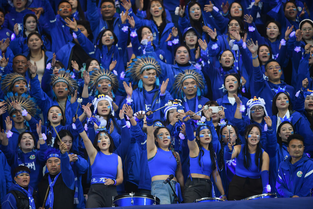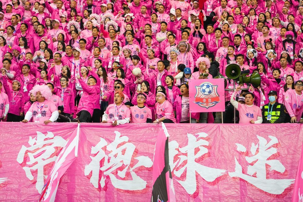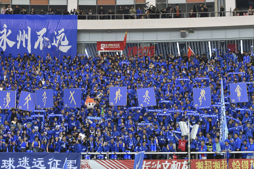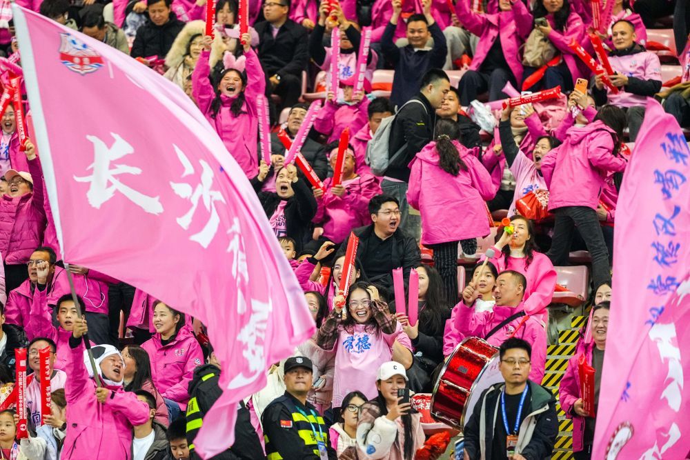 ↑ 常德队球迷为球队加油助威。 新华社记者 陈思汗 摄