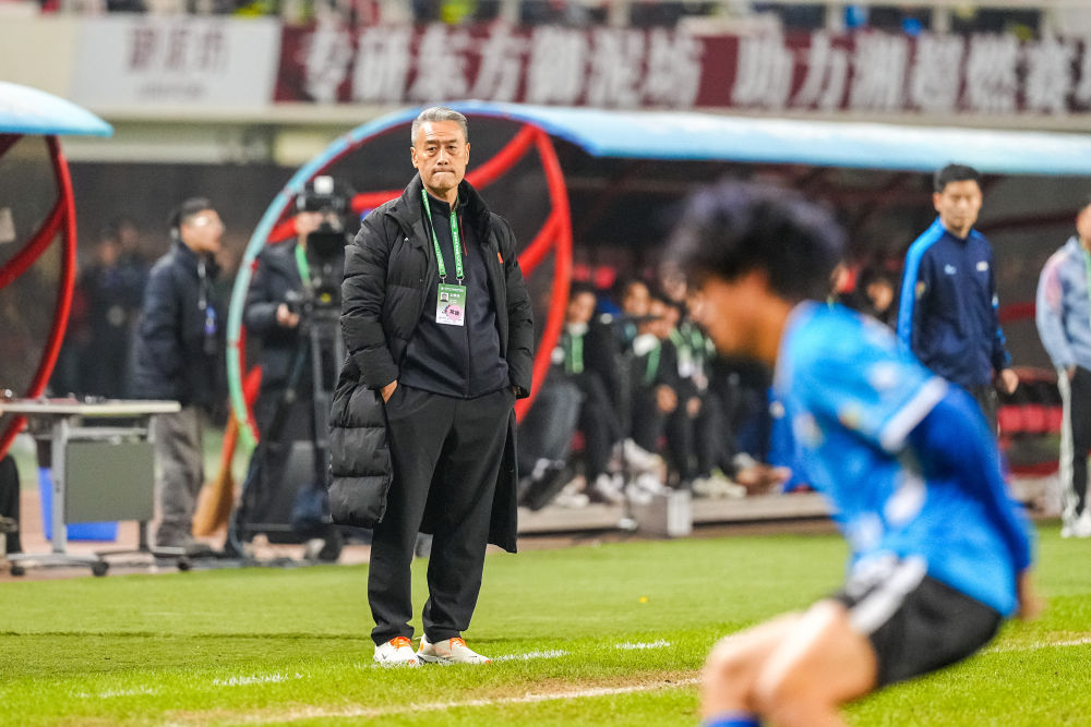 ↑ 常德队主教练赵旭东(左)在场边观战。 新华社记者 陈思汗 摄
