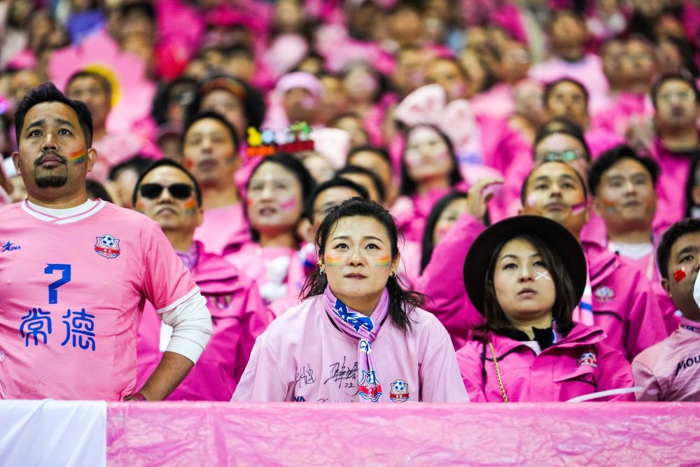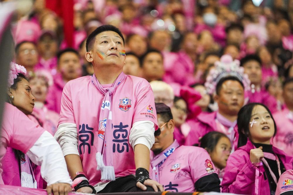 ↑ 常德队球迷在看台观赛。 新华社记者 陈思汗 摄
