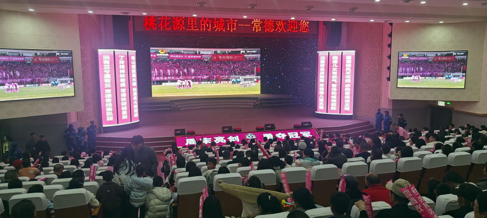 ↑ 球迷在常德临澧县丁玲大剧院的观看比赛直播。 新华社发(庞宇歧 摄)