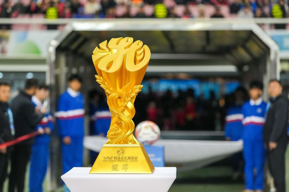 ↑ 这是在长沙贺龙体育场拍摄的2025湖南省足球联赛冠军奖杯。 新华社记者 陈思汗 摄