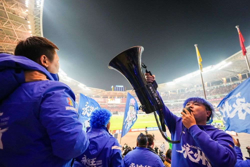 ↑ 永州队球迷为球队加油助威。 新华社记者 陈思汗 摄