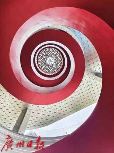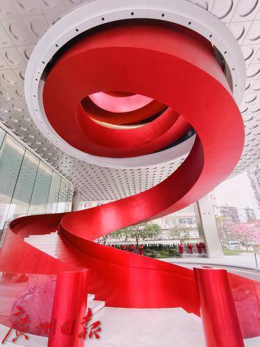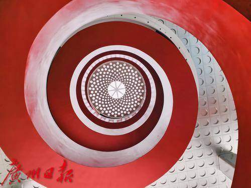 12月26日,位于广州琶洲电商总部核心区的OneM当代艺术中心内,一座贯穿地面七层楼、直径13.6米的红色螺旋楼梯,成功创下“无支撑旋转楼梯的单段最大高度”吉尼斯世界纪录。