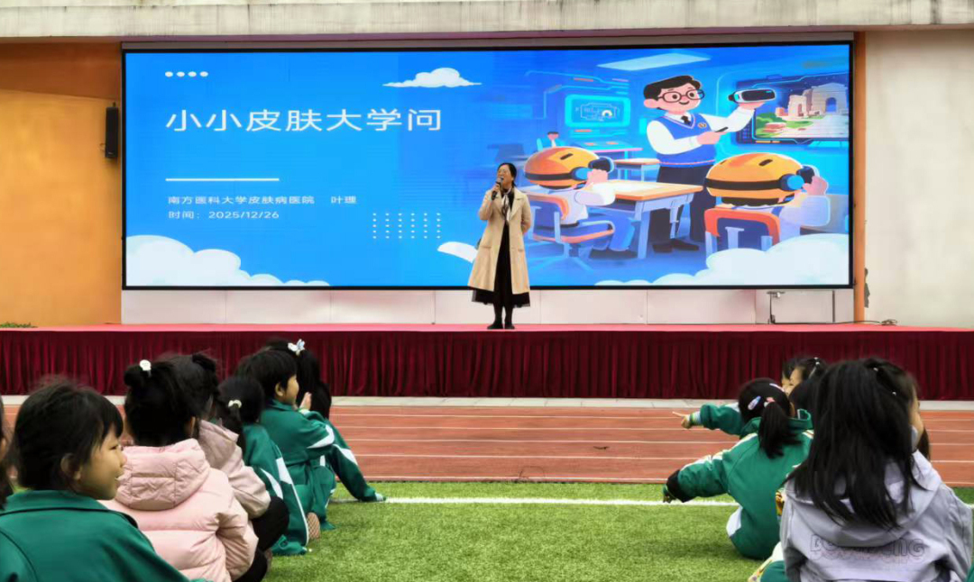 12月26日,为深入贯彻落实“家校共育”理念,广州市花都区新华四小附属珑华小学家长课堂特邀南方医科大学皮肤病医院、化妆品检测中心常务副主任叶理,为一、二年级学生开展专题健康科普活动,旨在提升学生皮肤健康素养,构建“学校引导、家庭协同、专业支撑”的儿童健康教育协同体系。