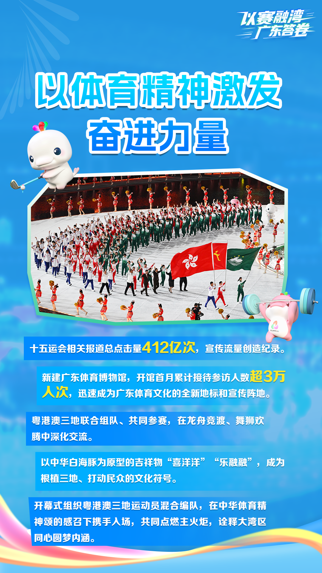 自2021年全运会进入粤港澳大湾区时间以来,广东举全省之力、集各方之智,用心用情、精益求精,以昂扬向上的奋斗姿态做好各项筹办工作,有力推动大湾区经济社会发展。