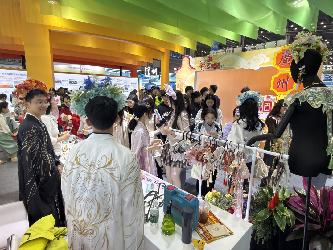 来到粤韵之门,面塑、簪花、广绣、广彩等非遗代表性项目吸引众多嘉宾体验。“我们准备了面塑体验,欢迎求职者前来参与。”广州市技师学院的一名学生介绍。现场观众纷纷动手,捏制出福袋等生动作品。