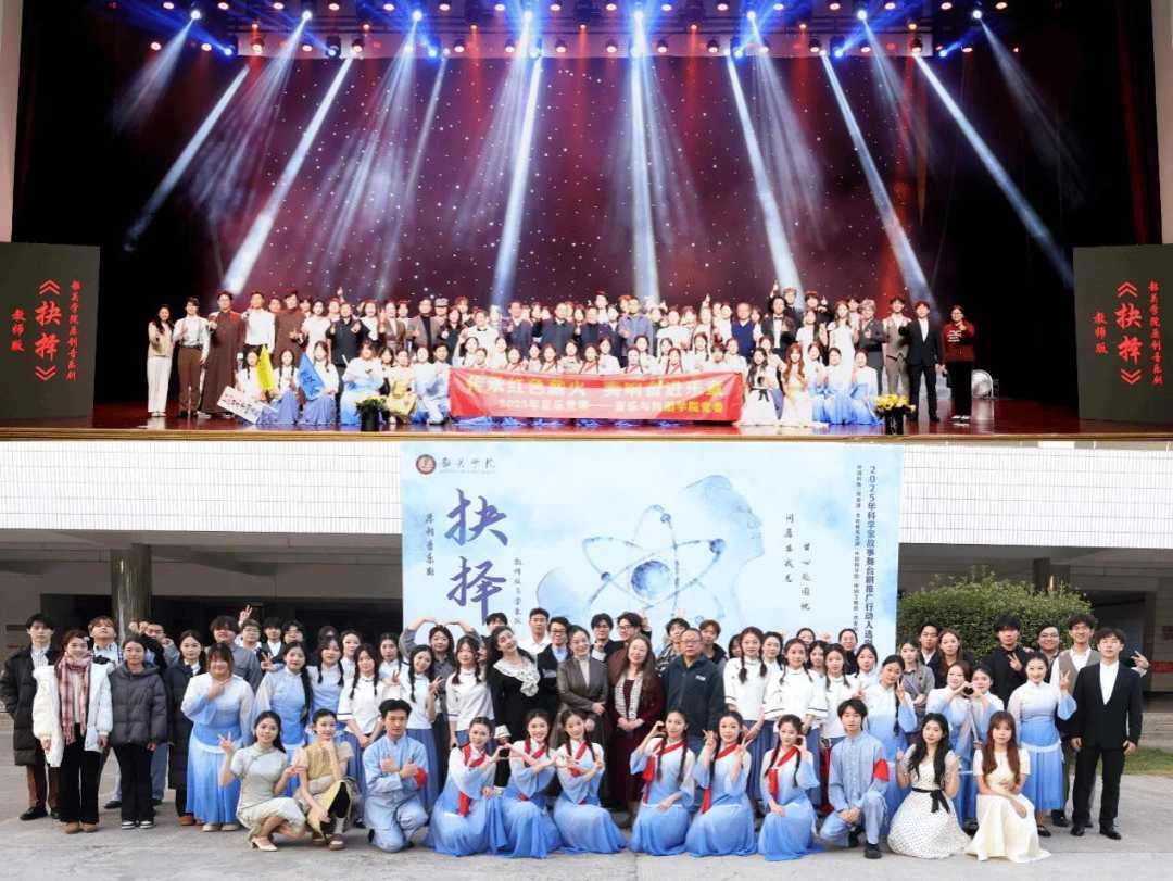 广州日报新花城记者今天了解到,由中国科协青少年科技中心指导、韶关学院出品,韶关学院音乐与舞蹈学院师生创作的原创音乐剧《抉择》近日在韶关学院思源区体育馆完成双版首演。该剧为2025年中国科协联合教育部等七部委主办的“科学大师宣传工程”重点项目“科学家故事舞台剧推广行动”入选剧目。