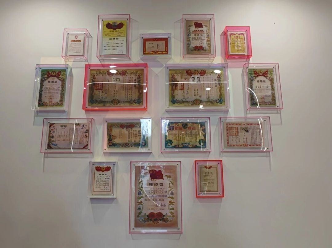上楼登记,下楼宣誓。中式“花好月圆”风格的颁证厅,充满仪式感;展示墙上,不同年代的结婚证静静诉说时光里的承诺。