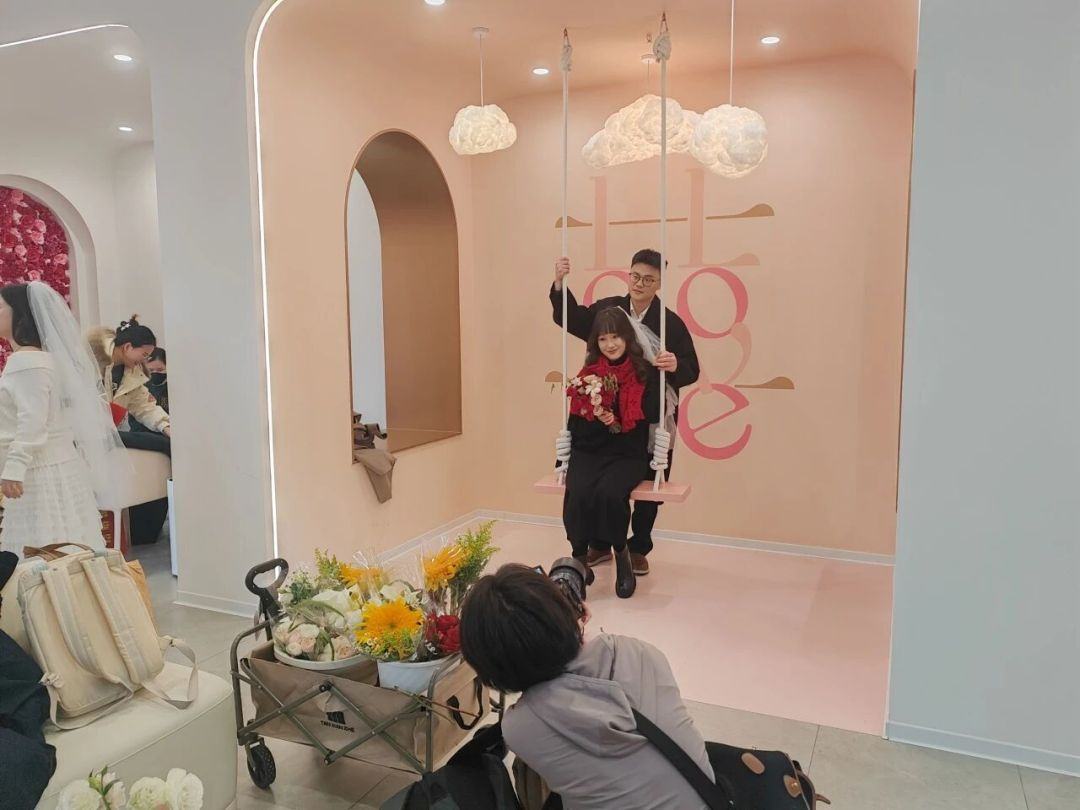 人多的时候,新人材料预审后可以到周边拍照逛逛,电话通知再回来。“我们将依托婚姻登记处这一服务平台,赋能周边产业经济,打造幸福街区。”董力瑾说。
