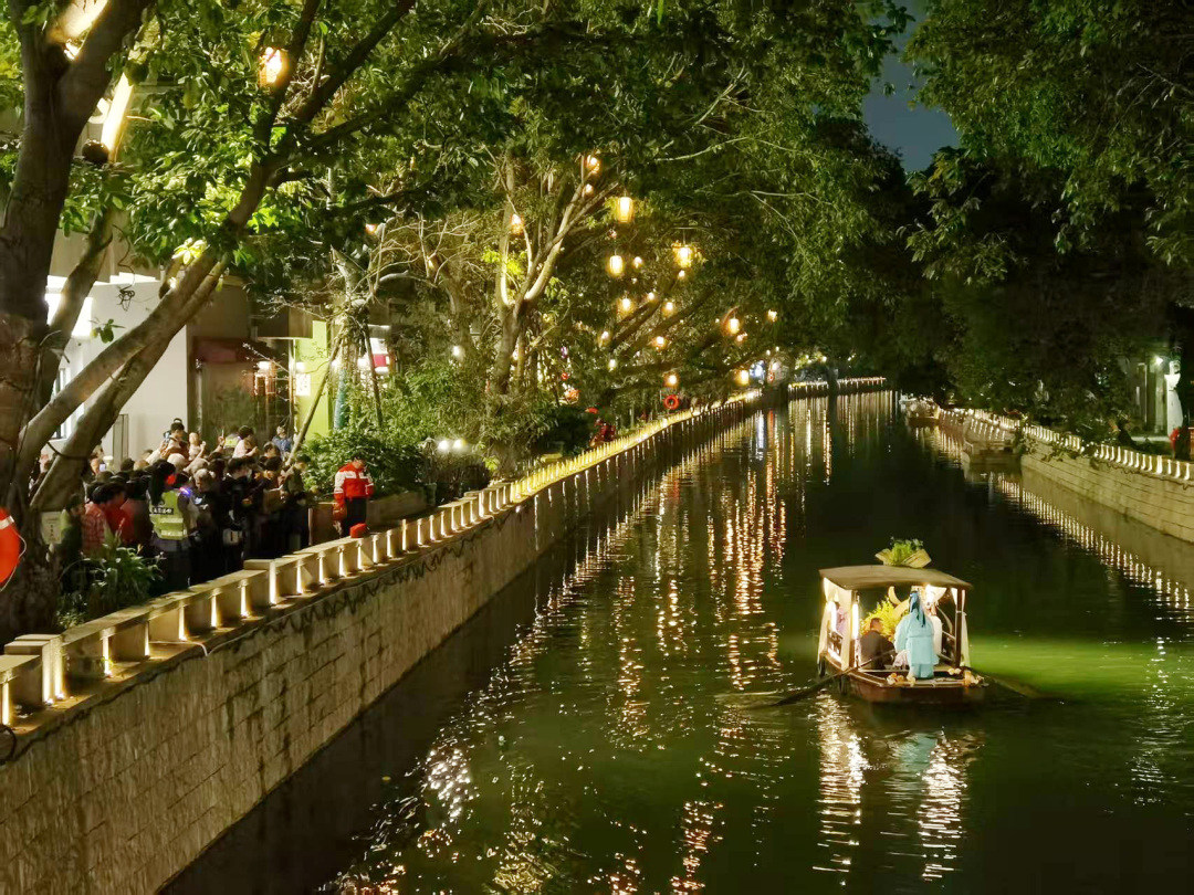 逛完古街,走进珊洲河,这里清清河水,古树倒影,小船游弋……远远望去,犹如一幅幅水清岸绿的生态美景画。月光下的珊洲河,让许许多多的老莞人情意绵绵,思绪万千。“开门见水,举步登船,是他们内心深处的记忆,更是他们一直的期盼。”如今,靓丽的珊洲河回来了,他们期待烟火重逢,繁华再续。正因为如此,越来越多的街坊,都搬回珊洲河旁的房子居住了。