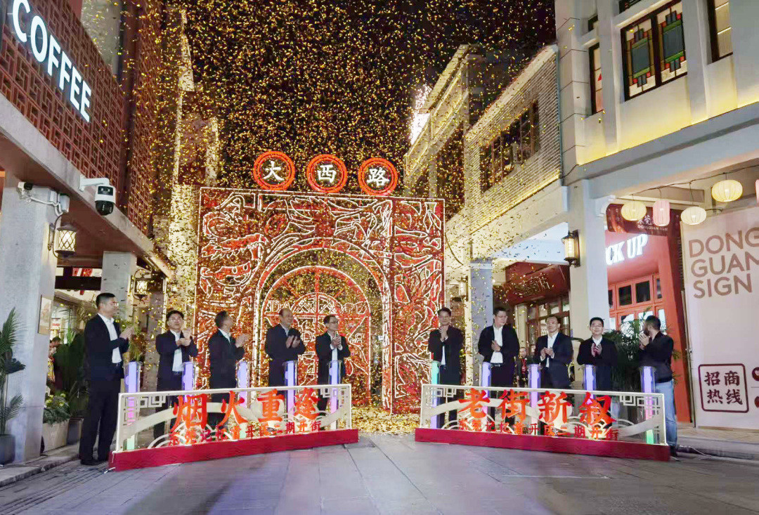 12月29日晚,东莞莞城迎来了又一个历史高光时刻,东莞记忆首开区二期开街亮灯仪式在大西路门楼前举行。东莞市领导、莞城街道全体班子成员、东莞记忆项目负责人、各界专家学者、品牌主理人、企业代表、社区街坊共同见证。