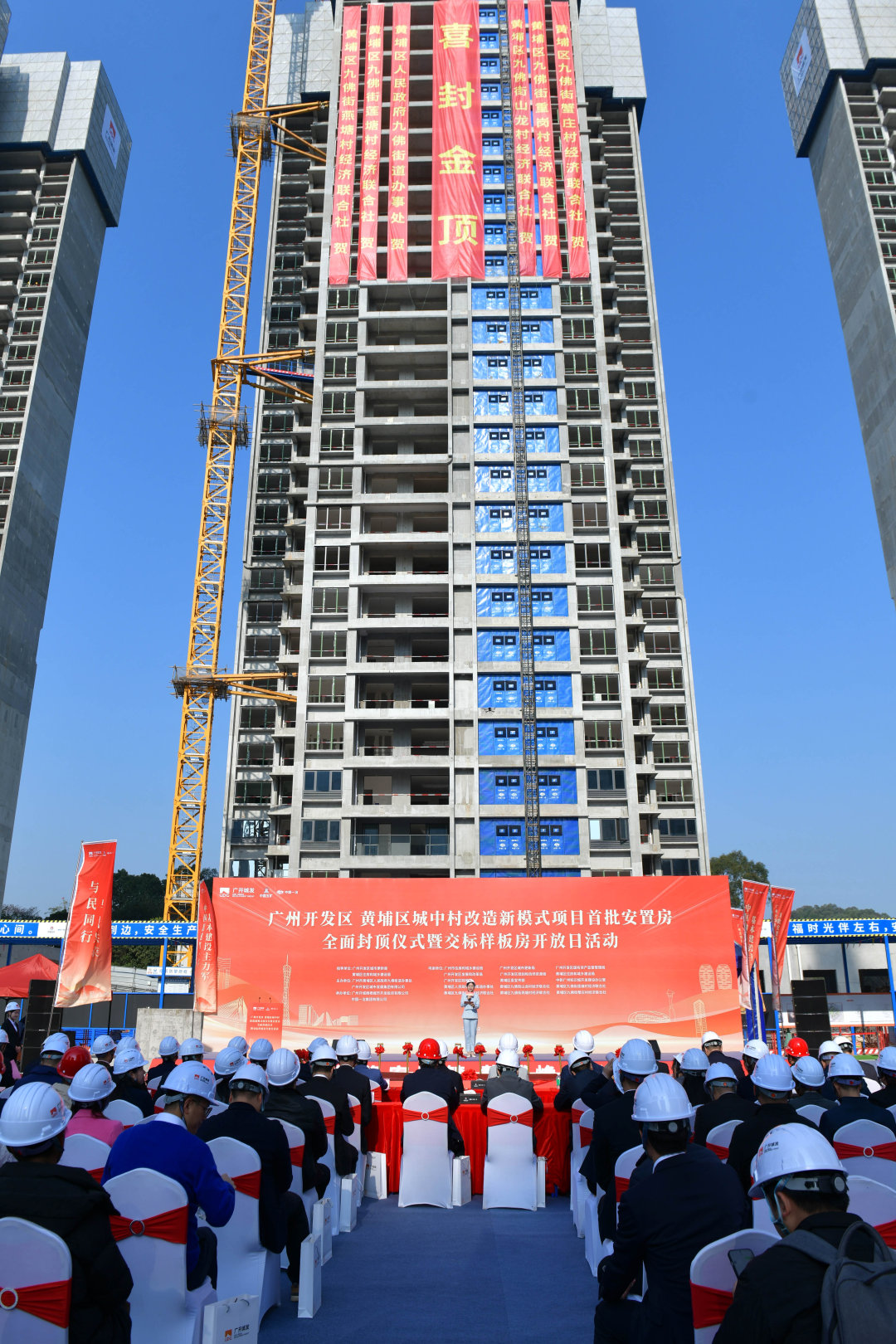 此次封顶,不仅标志着项目建设正式迈入交付冲刺阶段,更成为了广州开发区、黄埔区城中村改造新模式项目中首批全面封顶的安置房,为黄埔城市更新工作增添了丰硕成果。