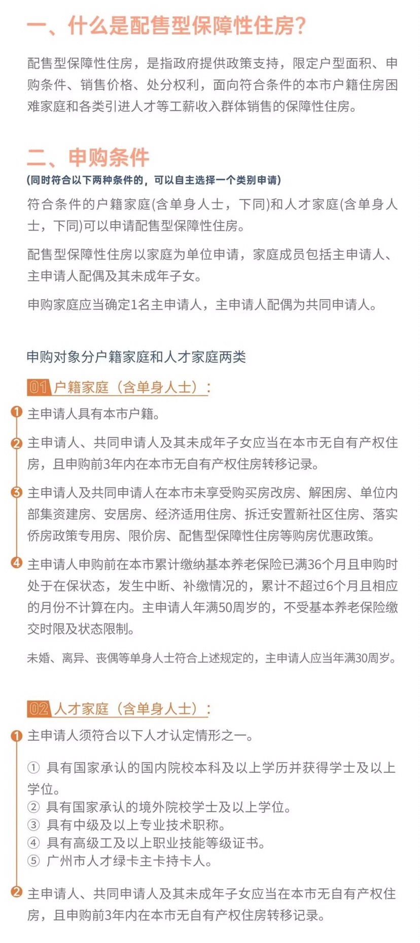 4. 主申请人持有《广州市高层次人才证书》或具有博士学位的,需全职在穗工作;具有硕士学位的,申购前需在本市累计缴纳基本养老保险满12个月,其他人才申购前需在本市累计缴纳基本养老保险满24个月,申购时本市基本养老保险应当处于在保状态,发生中断、补缴情况的累计不超过6个月且相应的月份不计算在内。