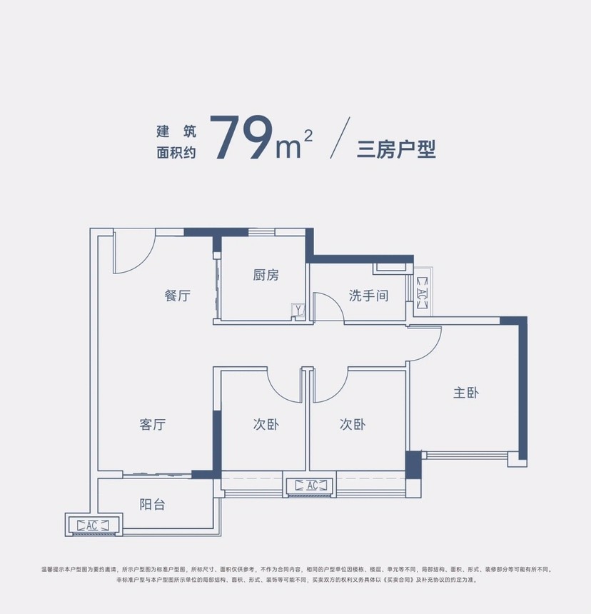 项目为12层低密住区,约65-79㎡实用2-3房,户型如下: