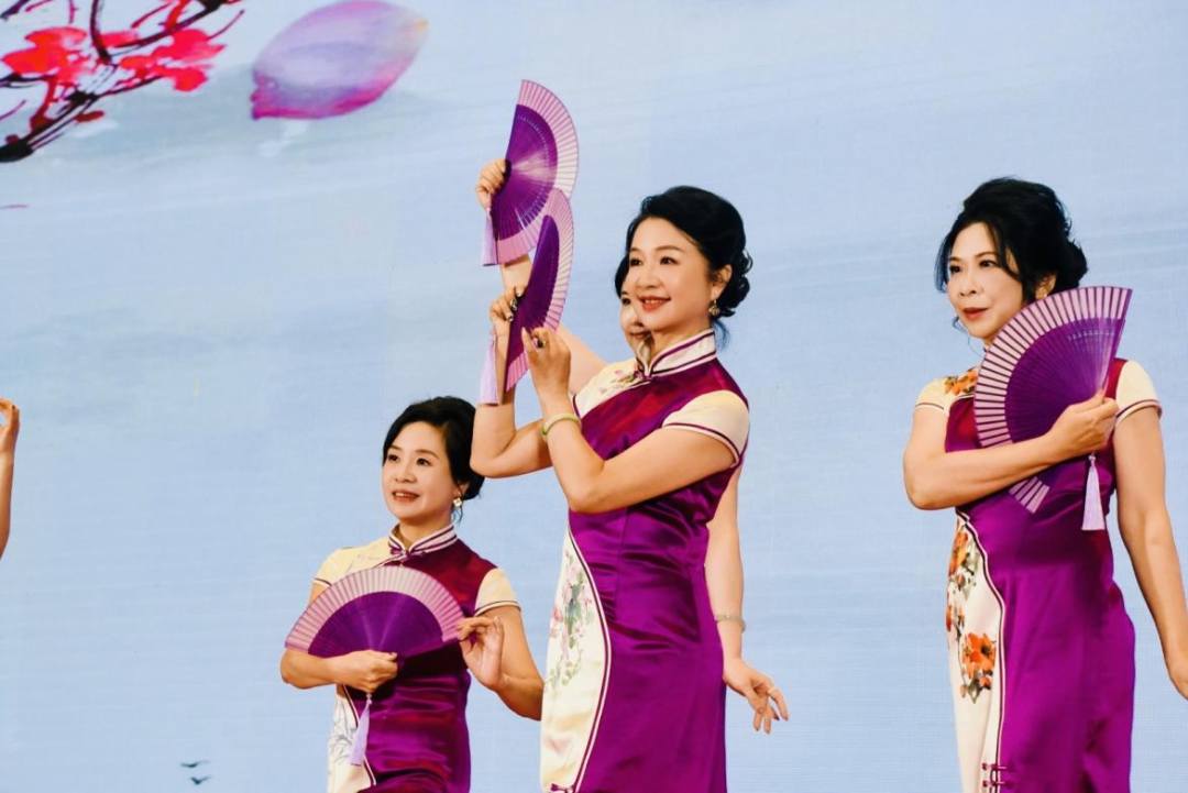 荣华组中,广州扬爱妈妈融合旗袍团则以深厚的情感力量打动现场观众。该团队由特殊孩子妈妈与志愿者共同组成。副团长张宇凌介绍,今年6月,团队曾受邀参与残特奥会开幕式演出创排,从7月起展开排练,并在短时间内从原有基础扩展至如今的180人大型团队,同时也促成此次以本次赛事舞台为载体的再创作。平日里,团队通过旗袍走秀与形体训练,帮助妈妈们舒缓长期照护压力,重建自我认同与生活信心。团长魏玲坦言,“旗袍表演对我们来说是一个疗愈的过程。原来很多妈妈是不会笑的,现在她们可以昂首走上舞台。”
