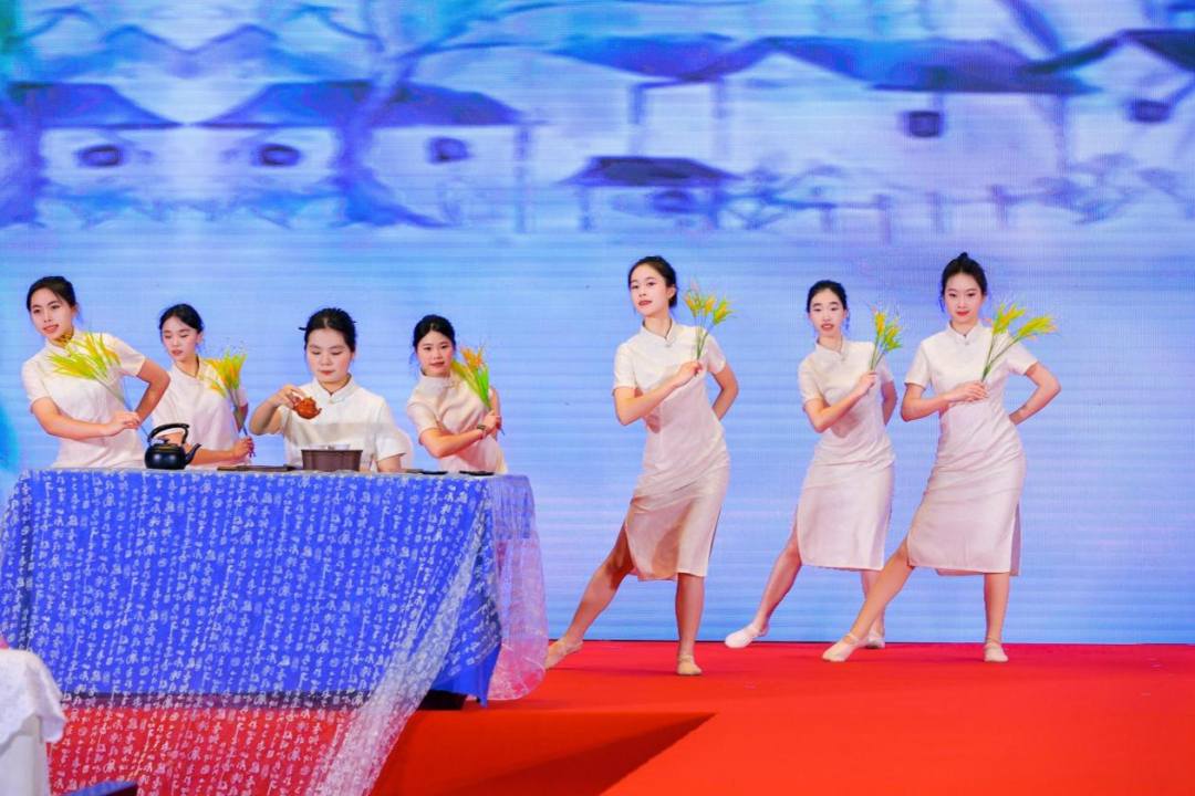 在芳华组中,皇家艺术团带来的节目《又见满庭芳》将旗袍表演与粤绣这一国家级非遗元素巧妙融合,通过舞台动作,展现广府文化的雅致底蕴。团长黄丽花介绍,团队因对旗袍文化与刺绣艺术的共同热爱而相聚,希望通过旗袍表达柔韧容谦的内在修为。广东生态工程职业学院舞蹈队带来的表演《凤舞茶香》则将旗袍与茶艺巧妙融合。指导老师康艺表示,“学校本身就有茶艺专业,这个作品是一次美育与专业融合的尝试。对学生来说,是一次很难得的机会。”