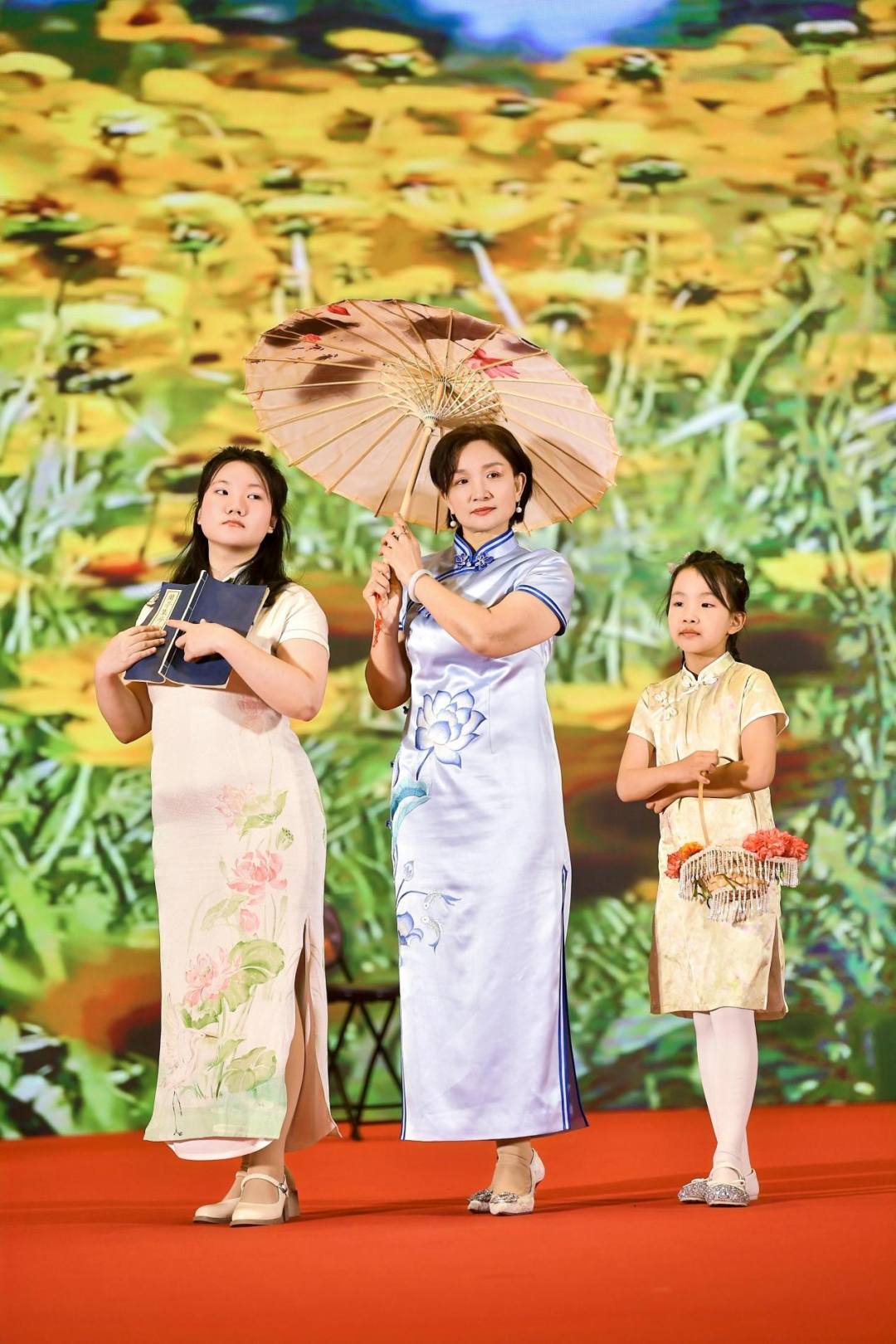 亲子组中,《春光美》以母女三人同台演绎的方式,呈现温润细腻的家庭情感。妈妈刘静坦言,自己与两个女儿此前均为“零基础”,“但我们都真心喜欢旗袍,喜欢这种东方韵味,所以决定一起站上舞台。”