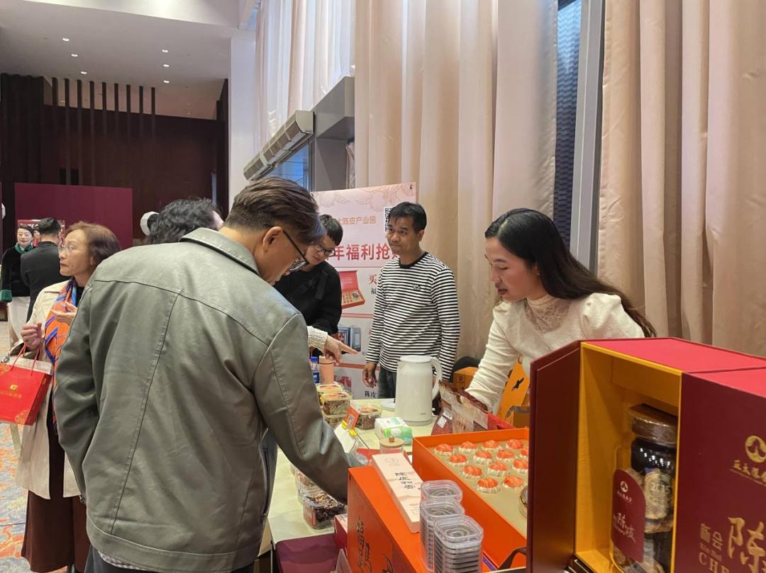 本届旗袍文化周不仅是一项赛事,更是一个连接文化、产业与社会力量的平台,构建 “赛事IP+产业生态+消费场景”的融合发展模式。为此,组委会在赛事现场特别设置了大湾区特色企业产品体验区。富元康灵芝负责人陶书坤介绍,企业具备完整的灵芝菌株培养、基地种植及研发生产体系,在现场为观众准备了赤芝片等特色产品作为互动小礼品。明德光华相关负责人梁冀蜀则带来相关大健康智能设备,让观众亲身体验,感受健康新生活方式。亚太陈皮产业园的展台格外引人注目,负责人刘明忠及其团队不仅展示了从新会柑到成品陈皮的全链条产品,还提供了陈皮茶、陈皮凉果、陈皮红豆沙等多种可现场品尝的衍生食品,吸引众多旗袍选手品尝打卡。此外,还有香云纱、非遗设计及手工文创等一系列特色产品,现场人气火热。