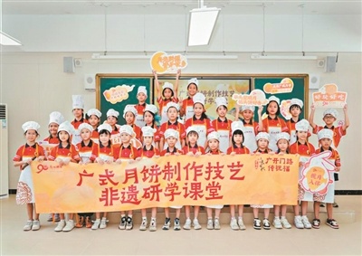 正果镇中心小学的同学们在学习广式月饼制作技艺。校方供图