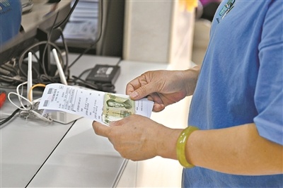 白云区大石岗卫生站,村民拿着单子和一元钱去缴费。广州日报全媒体记者杨耀烨 摄