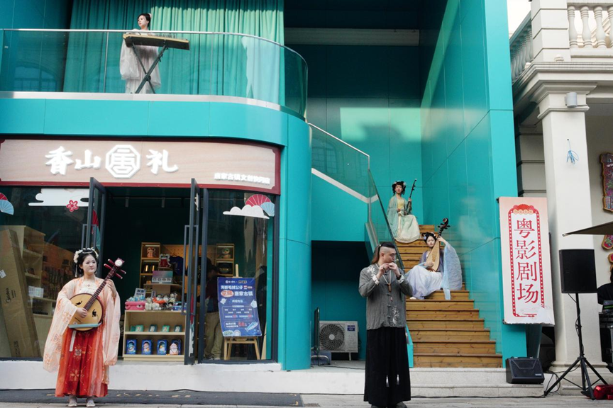 小提琴、二胡、琵琶在青石板路与百年骑楼间流动,“艺·闪古镇”艺术快闪给游客和居民带来了意想不到的惊喜。表演没有固定舞台,观众也不再只是旁观者,艺术在行走、驻足与聆听之间自然发生,让古镇“动”了起来。