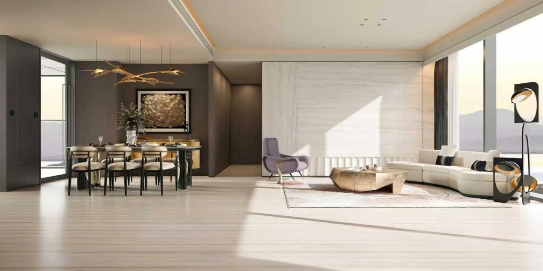 而在室内空间方面,设计则注重私密、功能与灵活性。部分楼栋采用3梯2户配置,实现私家电梯平层入户及主客动线分离。户型设计上,引入LDKT(客厅、餐厅、厨房、茶厅)一体化理念,并预留可拓展空间。部分大面积户型可满足多代同堂或企业主打造云端会所的需求,主套间内还规划了独立的藏品收纳空间。