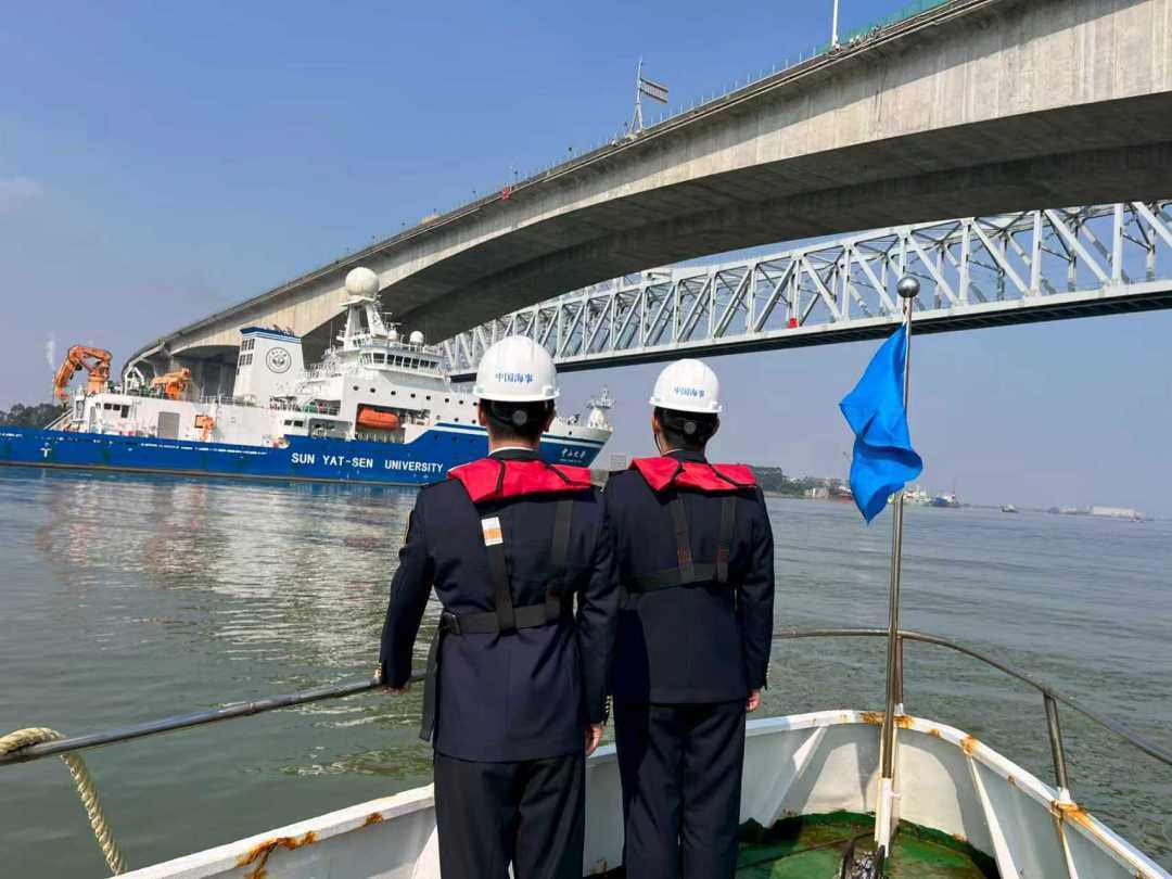 12月29日下午,我国新一代海洋综合科考实习船“中山大学”号安全驶入东莞市中联船厂进行维修保养,东莞海事部门周密部署、全程护航,为这艘国之重器进港靠泊提供了坚实的安全保障。