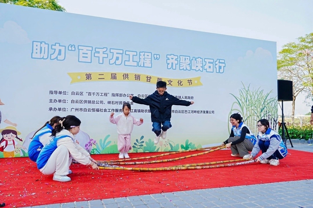 12月27日,主题为“助力‘百千万工程’ 齐聚峡石行”的广州市白云区江高镇峡石村第二届供销甘蔗文化节火热举行。活动以健康徒步为主线,融合乡村特色产业,巧妙串联起甘蔗种植基地、蝴蝶兰培育园、霸王花种植区和锦鲤养殖基地,不仅展现了峡石村推进“百千万工程”的阶段性成果,还为江高甘蔗掀起了一波销售热潮,吸引了不少市民前来领略巴江河畔美景,品尝甜蔗,乐享农趣。