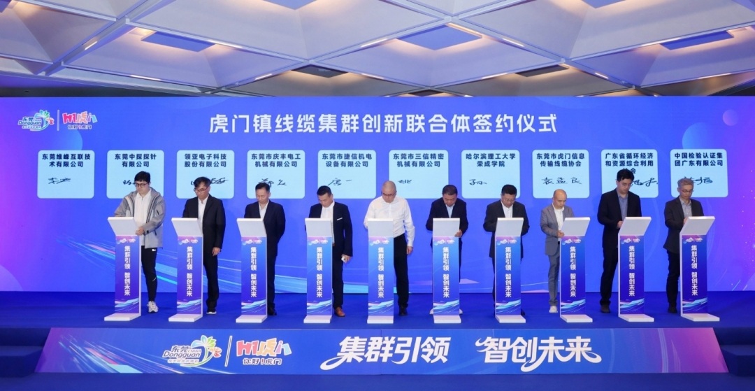 为整合创新资源、加速成果转化,本次大会上,“虎门镇线缆集群创新联合体”正式组建。该联合体由维峰电子、东莞中探探针、领亚电子科技等6家行业领军企业牵头,联合广东省循环经济和资源综合利用协会、东莞市虎门信息传输线缆协会、哈尔滨理工大学荣成学院、中国检验认证集团广东有限公司等多方力量,构建起“政产学研用”深度融合的长效创新机制。