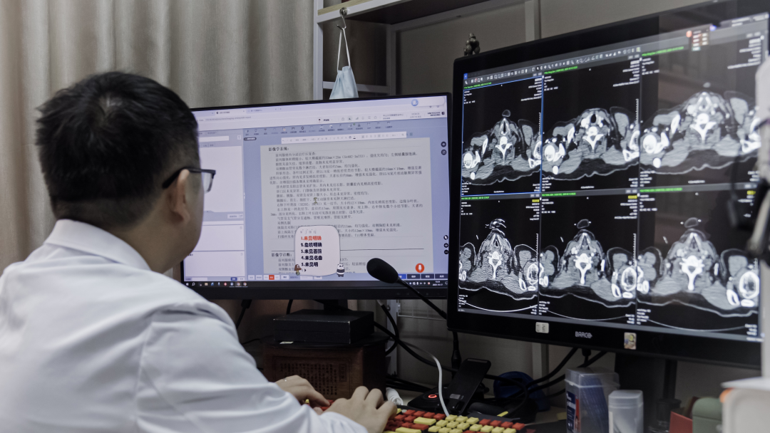 放疗排期的焦灼等待、厚重病历的随身背负是许多肿瘤患者就医途中的共同记忆,而问诊时文书整理的繁杂、病房护理人力资源短缺等问题,也让医护人员倍感压力。“外地患者前来求医,常携带大量检查资料,我们一半以上的时间都耗费在整理病历和书写诊疗意见上,与患者沟通的时间非常有限。”中肿鼻咽科副主任医师王琳坦言。而智慧诊室的落地,让这一困扰迎刃而解。