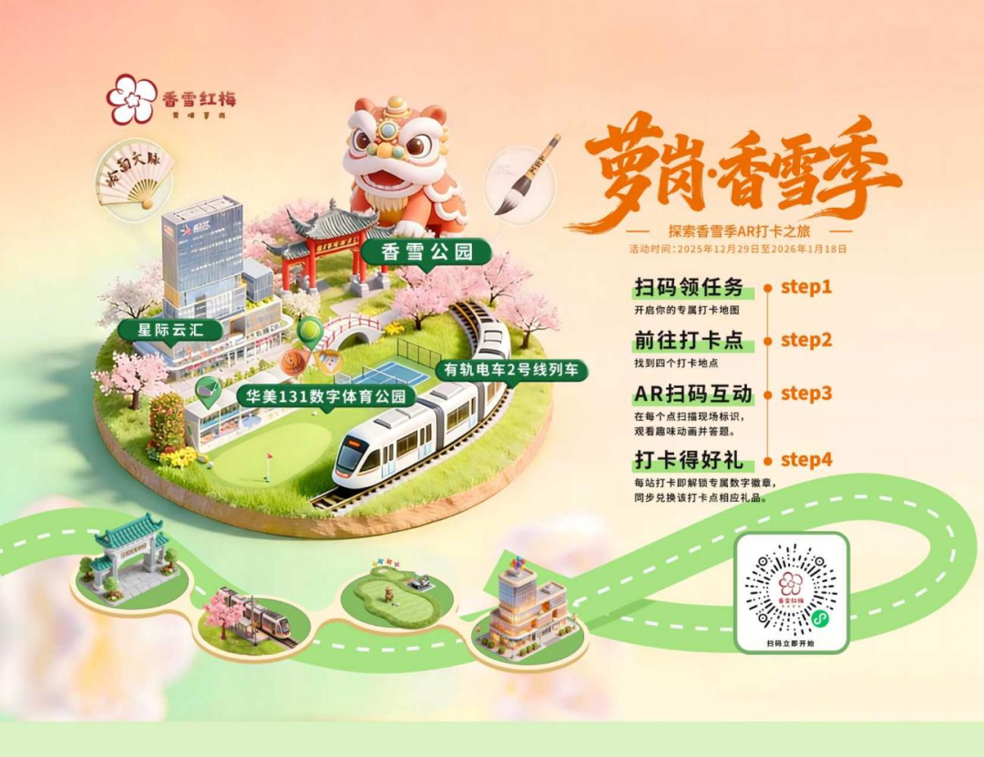 作为本届文化季的重要创新亮点,“探索香雪季AR打卡之旅”已于12月29日抢先上线,为市民带来一场融合科技与文化的沉浸式游览新体验。