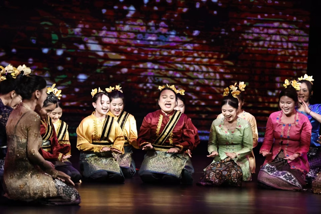 艺术展演环节以“粤见世界·国际学子艺述纪”为主题,来自中山大学、华南理工大学、暨南大学、广东外语外贸大学等14所高校的中外学生,通过“初识·岭南印象”、“探索·校园足迹”、“扎根·文化共生”、“绽放·未来之桥”四个篇章,以朗诵、歌舞、武术、情景剧、合唱等丰富形式,讲述了留学生在广东学习生活的生动故事和深刻感悟。他们表达了对中华文化的真挚热爱、对中国的深厚情感,并抒发了投身中外友好事业、讲好中国故事、促进民心相通、推动构建人类命运共同体的美好愿望。