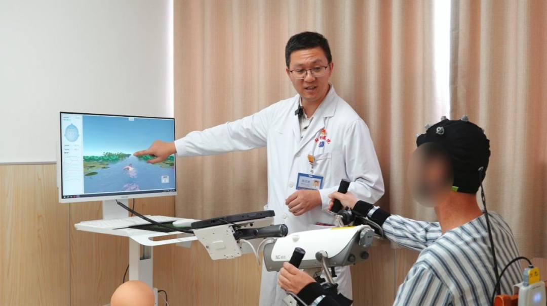 “想象一下游泳的动作……对,就是这样!”在广东三九脑科医院康复治疗科,40出头的脑梗后偏瘫患者王先生(化姓)戴着“泳帽”般的电极帽,仅凭意念就驱动偏瘫的左手动了起来。这一幕,正是该院刚揭牌的脑机接口临床研究病房的日常诊疗场景。12月31日,广东三九脑科医院全院区脑机接口病房正式揭牌。